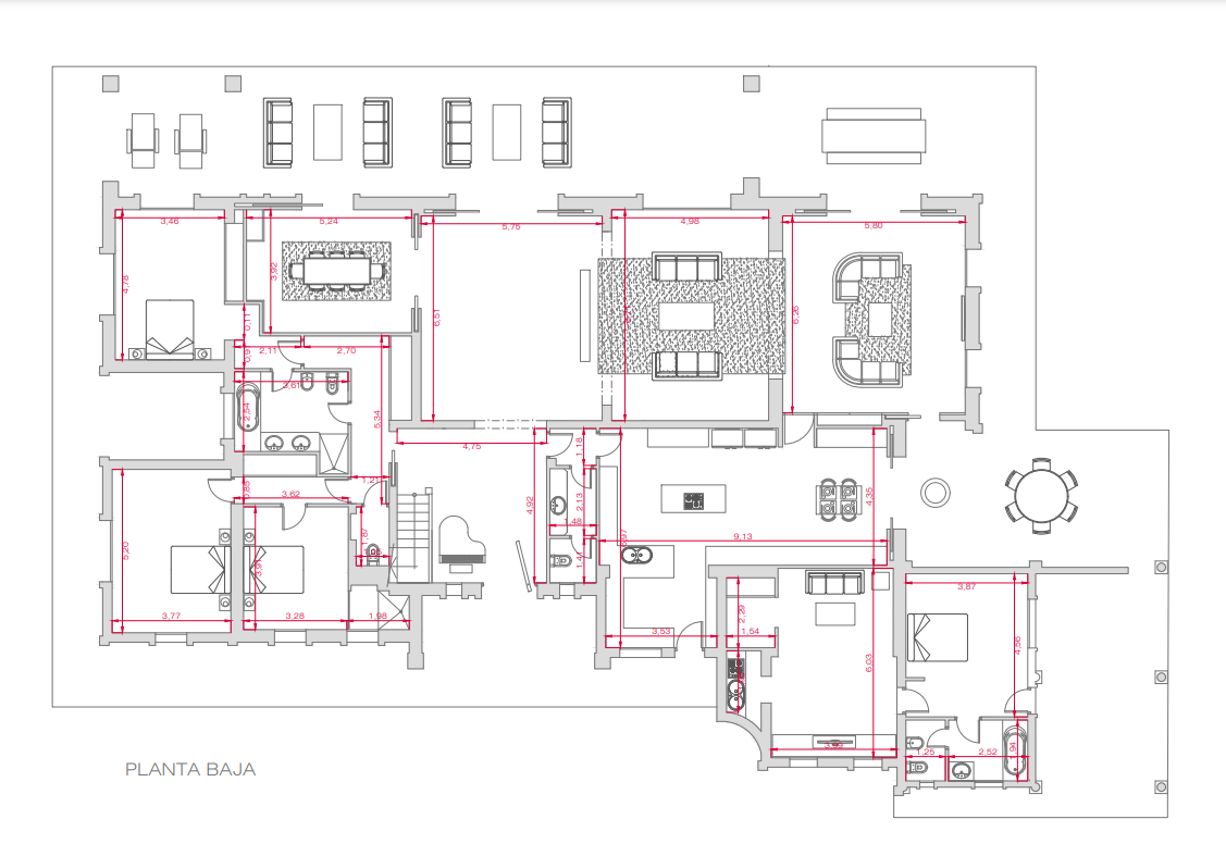 This fully renovated villa features six en-suite bedrooms, blending timeless elegance with modern comfort. The spacious living room flows seamlessly onto the outdoor terrace, creating an inviting environment perfect for relaxation or entertaining.